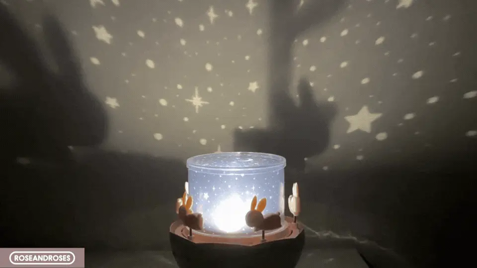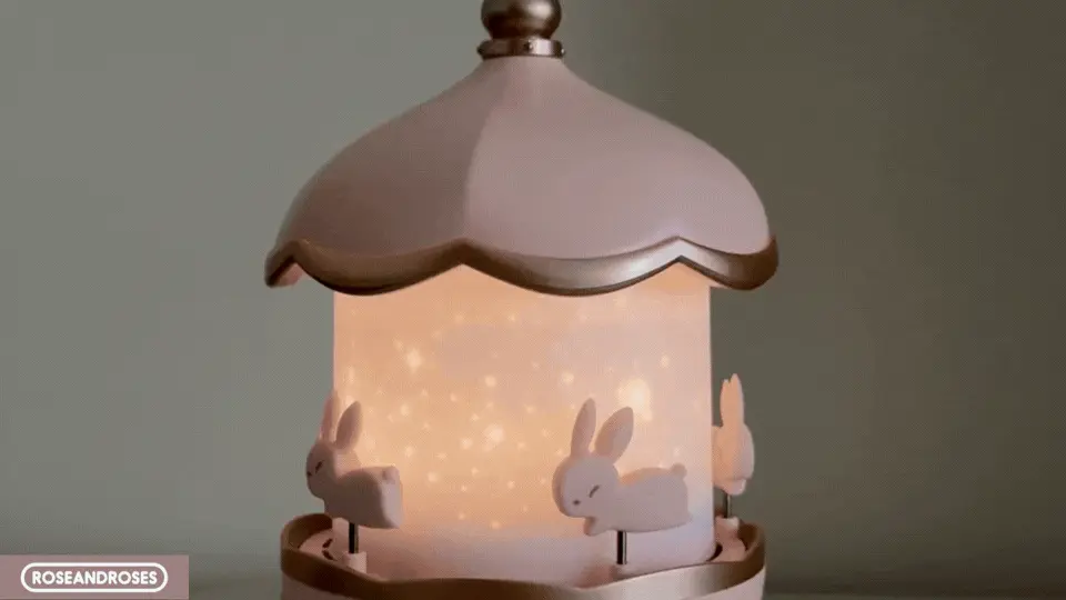 🎼 Bluetooth hoparlör ile dilediğiniz melodiyi iletin 🎠 İzlemesi huzur veren dönme efekti 💡 Romantik ve loş ambiyans aydınlatması 🔋 Kablosuz, şarjlı ve taşınabilir yapı 🐰 "Seni seviyorum" demenin en masum yolu